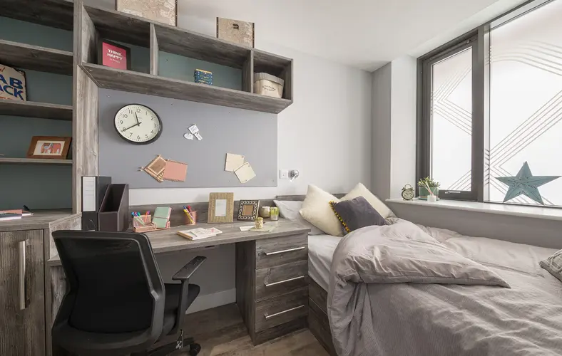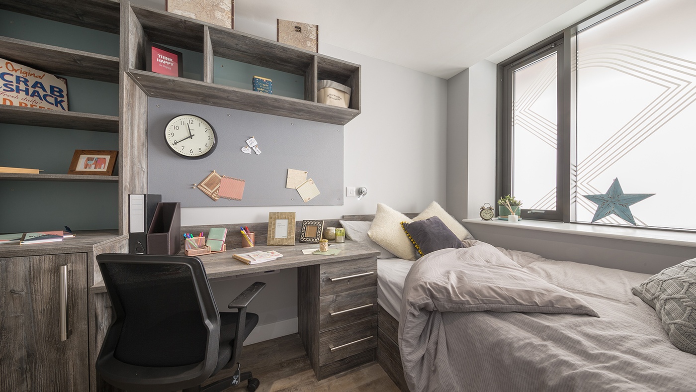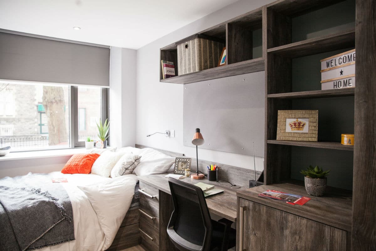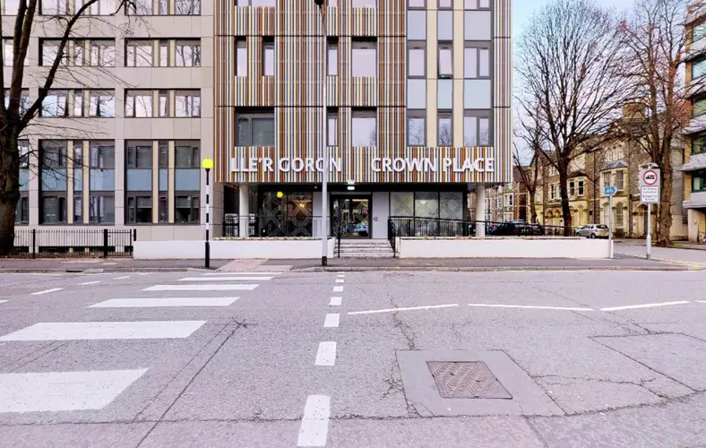 Crown Student Living tasked us with redeveloping and extending an existing 1960s city centre office building on St Andrews Place, Cardiff. The project comprised 378 purpose-built managed student beds with a mix of individual and double studio rooms.