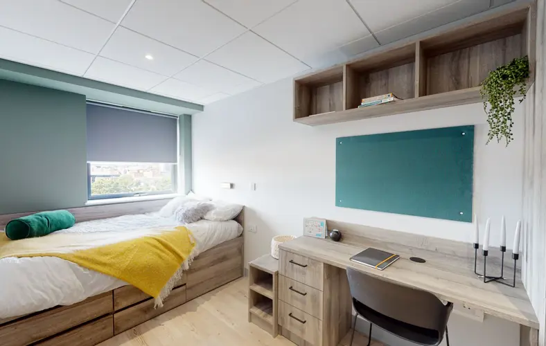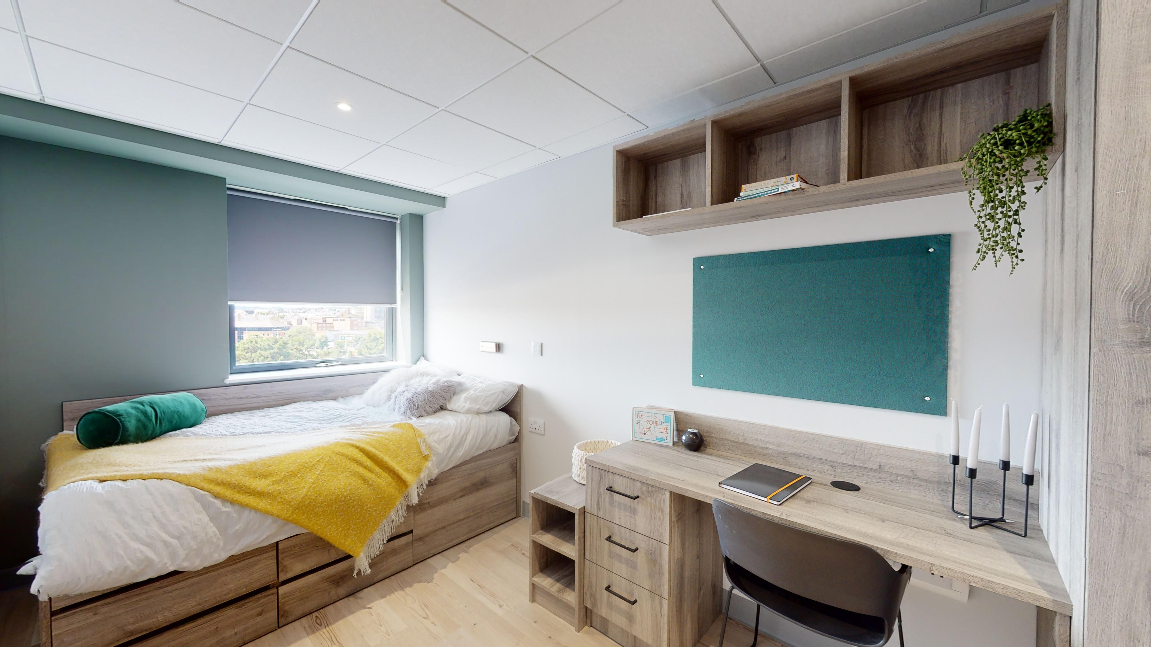 Construction of a purpose-built student accommodation facility housing 638 students in a mixture of studio & ensuite high-quality rooms with shared kitchens and social spaces.